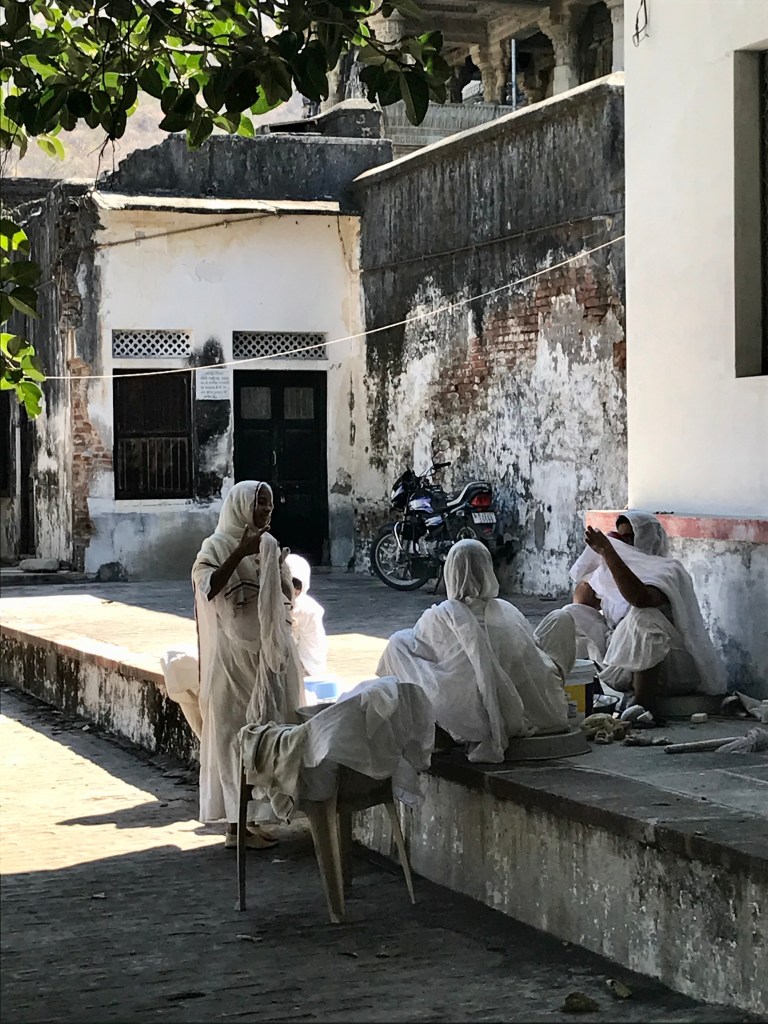 I learned that they were Sadhvis, Jain nuns, and that they were itinerant pilgrims. Jainism is one of the three ancient Indian religions along with Hinduism and Buddhism, The name comes from the Sansrit word “Jinja”, which means Victory and refers to the destruction of Karma and the stream of rebirth, or Moksha ,through an ethical and spiritual life.