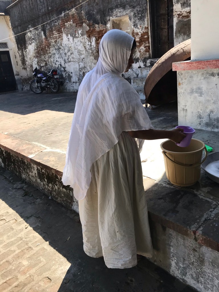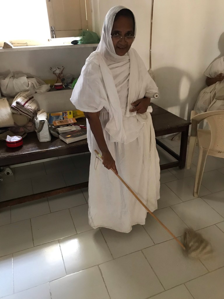 Guruji, Jain Nun, 57 yrs. old sweeping her eating bowl