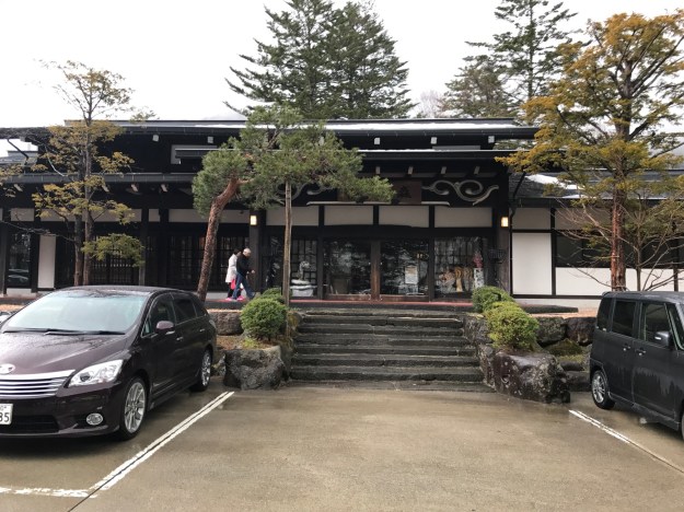 I am the only Westerner on the bus, but there is a video screen which shows the name of the stops, and a tape announces them in Japanese, English and Chinese. Nobody speaks a word of English. As we climb higher and higher the landscape is covered in snow and we pass ski resorts and ski lifts. There must be at least three feet of snow. It is also raining outside and I’m wondering if I am crazy to have come since the baths are ouside. At exactly the scheduled time of 12:40 we arrive at the bus station. I approach a sales girl in the store which is stocked with souvenirs and local food specialities for the Chinese bus groups who pass through. Slowly and clearly I say “Onsen” with a questioning look. She points me to another sales person who points upwards. When I don’t understand, they take me to a third person who says “Upstairs, third floor”. I’m puzzled because because I remember reading that it was five minutes away, but I go up the elevator anyway. I show the man at the desk my little piece of paper with the name of the onsen written in Japanese and he nods his head. I pay, put my shoes in a locker and then go off to the ladies section.