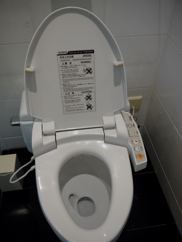 The dressing room has a high ceiling with massive wood beams and is filled with young women, a few mothers with their children, and now me, the only westerner. It’s confusing where to begin- one locker for the shoes, another for clothes and purse, and a wicker basket to store your towel and yukata. I have to wash, yet again- because that is the custom. One of the ladies shows me a special cream to wash my face- the secret ingredient is horse oil! In my haste to get to the baths, I inadvertently take the toilet slippers out of the bathroom. (There are separate slippers to wear inside on the tatami mats and inside the bathroom). I hope nobody has noticed, and I sheepishly return them.