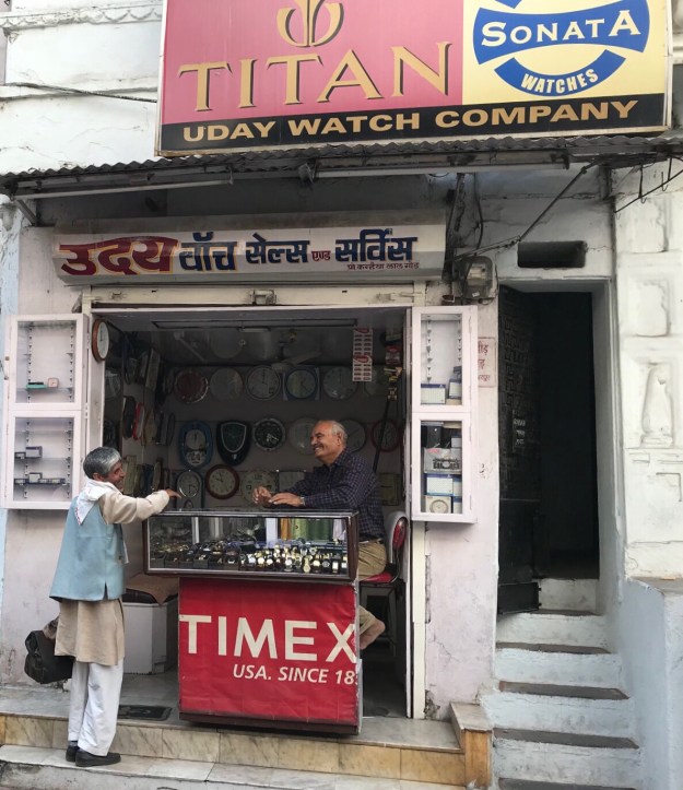 Nestled between the Artificial Jewellery Shop and the Medical Supplies corner an elderly man sat on a high stool, fiddling with watches. He was surrounded by all manner of clock and watch parts and a small glass case displayed timing devices for sale, costing between a few dollars and several hundred. Gerald lives by the mantra “In India anything is possible”, but hopes for repairing his twenty year old travel alarm were fading.