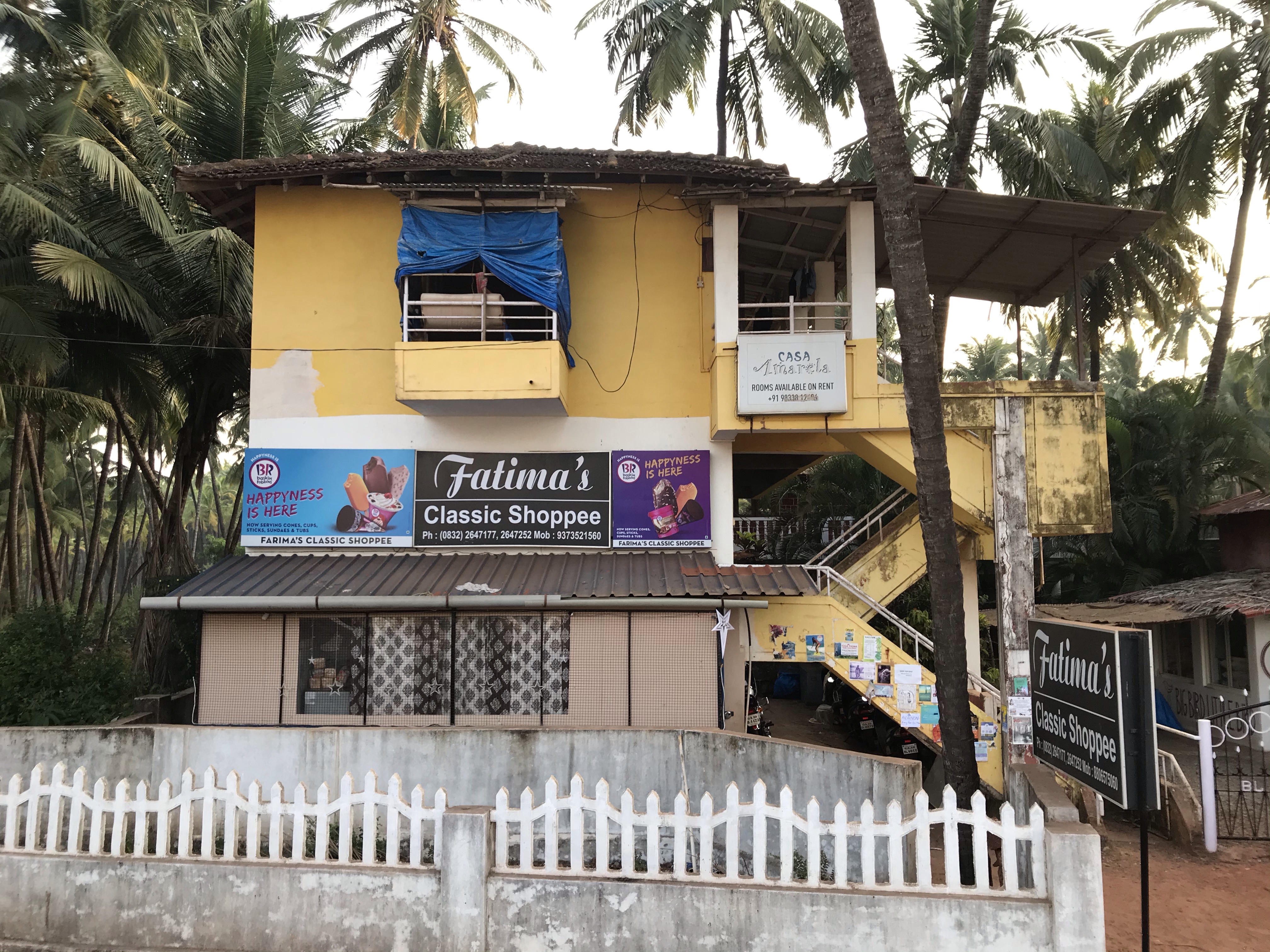 Brightly painted homes double as rooms to rent and Beach Huts display sign boards with menus, (often with funny spelling errors).