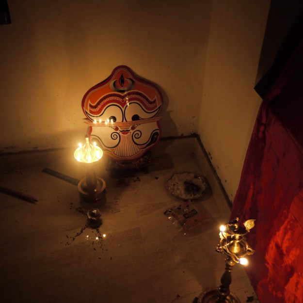 The alarm goes off at three in the morning and I jump up quickly and quietly so I don’t wake up Gerald. He insists it is not early morning but the middle of the night, and has decided to forgo this last Theyyam ceremony before we leave Kannur.