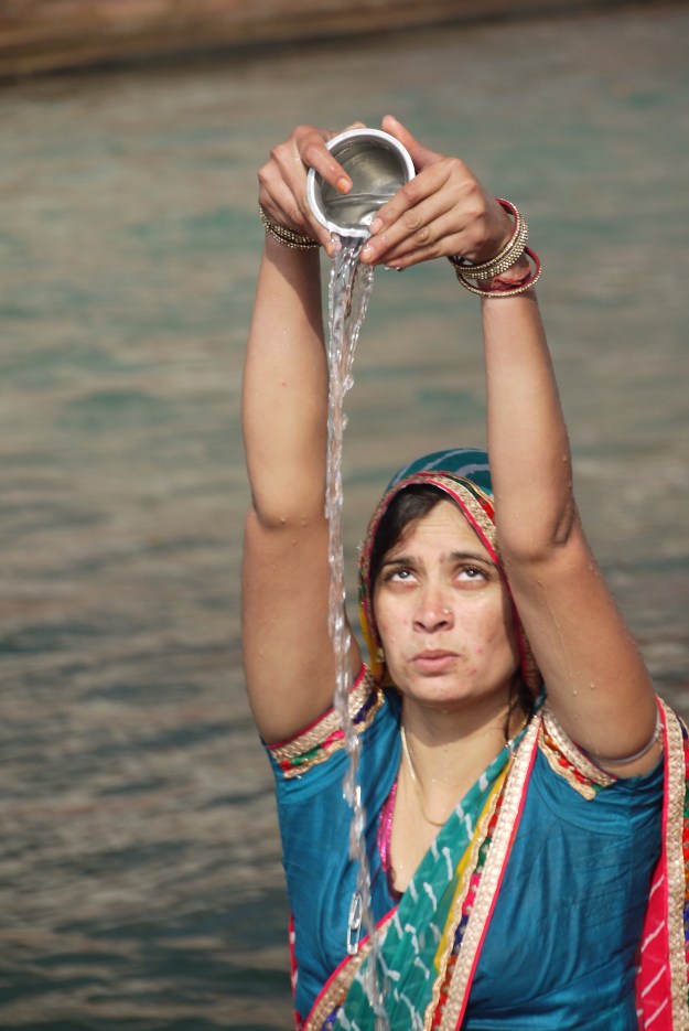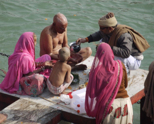 Today is another day and a completely different picture emerges. On our way to eat breakfast down the hill from our guesthouse ,we pass one of the many ashrams. Big cars are parked inside and a beehive of activity is going on. Turbaned sadhus clothed in saffron colored robes are mingling with devotees dressed in white. I look for someone who might speak English and ask what is going on. “Guru happy birthday. Rich people bring donations. After Satsang everyone come eat.”